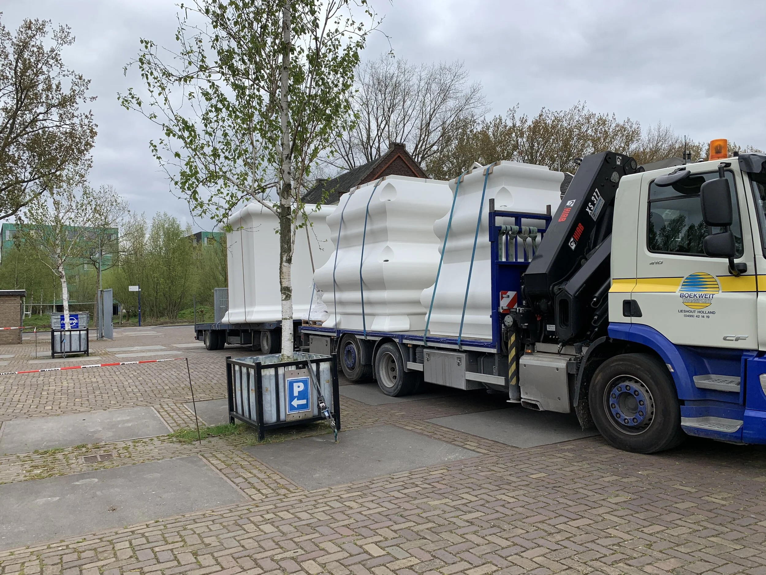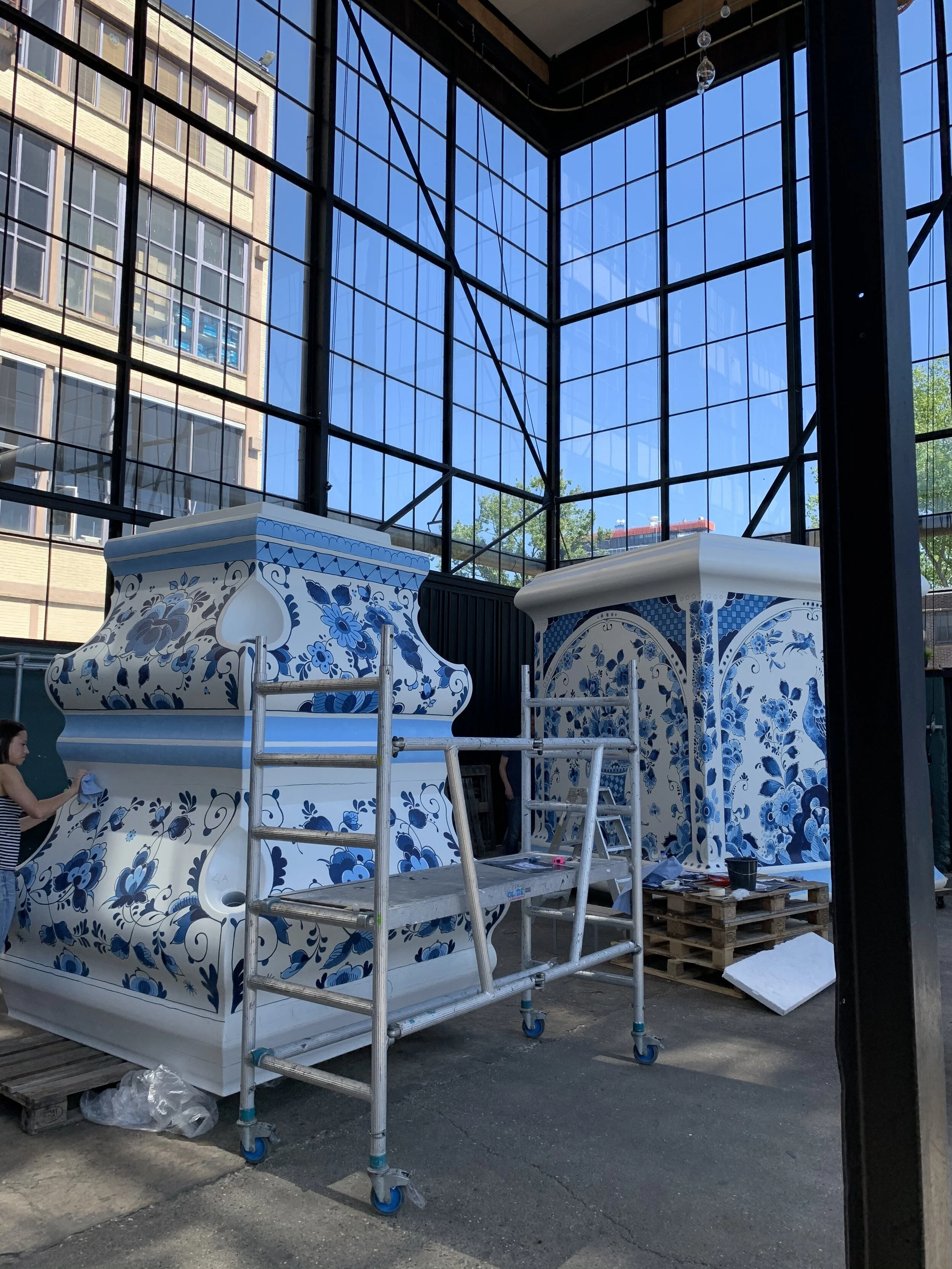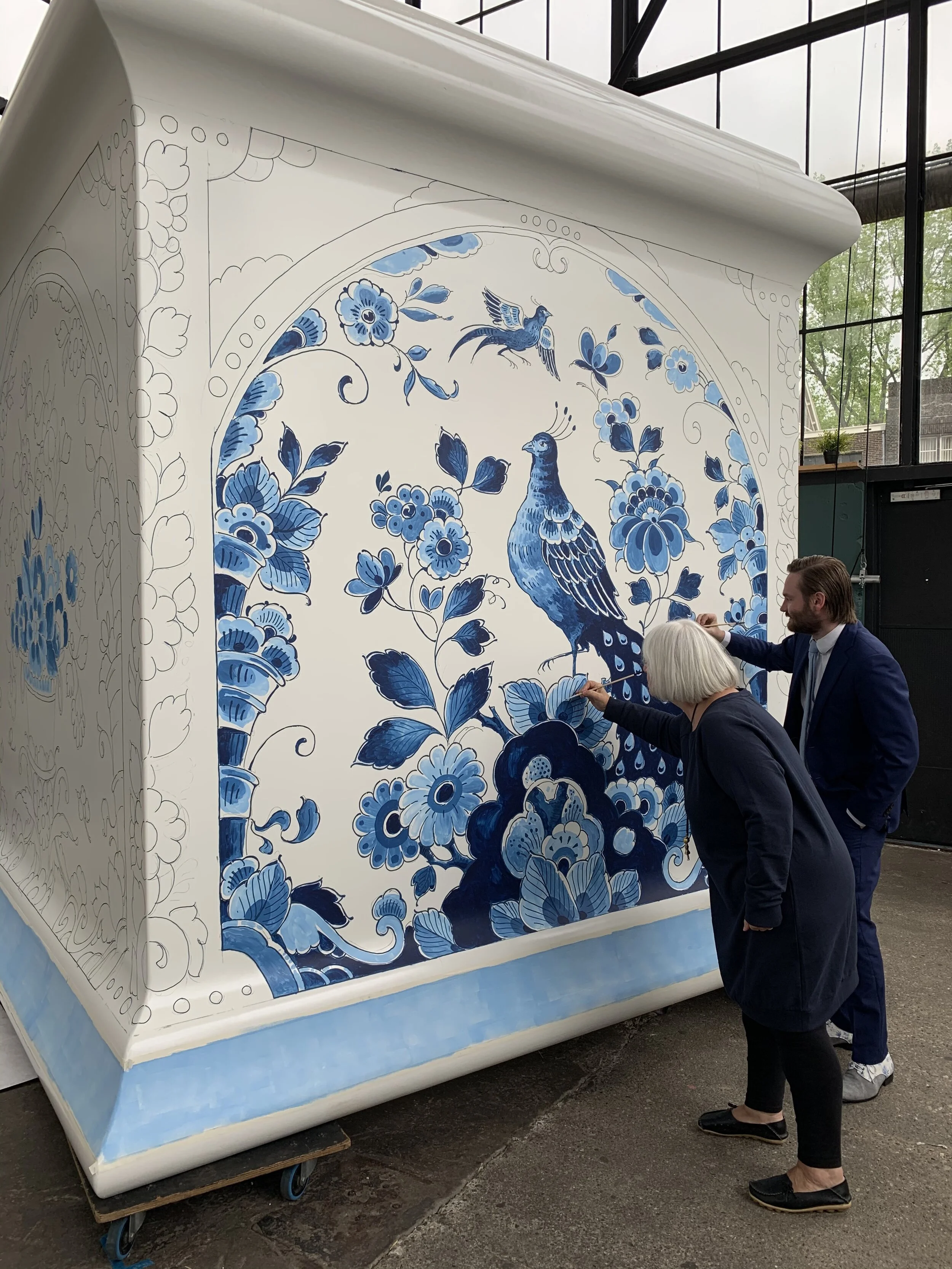 Delft krijgt de grootste tulpenpiramide ter wereld! Het beschilderen van dit 12-meter hoge kunstwerk is gestart. Initiatiefnemer Paula Kouwenhoven van Land Art Delft en wethouder Bas Vollebregt van o.a. cultuur hebben symbolisch de eerste penseelstreken aangebracht. De penselen zijn nu weer overgenomen door de schilders van Royal Delft. Zij schilderen het kunstwerk op ambachtelijke wijze met de hand af.